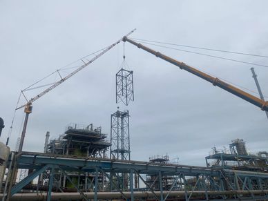 Dismantling and removal of a 57m vent stack structure and vent line within a live operational Tier 1 COMAH site.